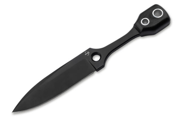 Meanwhile, get a glimpse of that handle! That’s where the throwing knife heritage is most evident, with a narrow, scaleless midsection and a G-10 “pommel” at the base. It looks cool and ergonomic in an unconventional way. Obviously, the lack of material in a throwing knife keeps it light and that same advantage has been bestowed upon the Fafo here; the thing comes with a listed weight of 3.7 oz. A Kydex pancake sheath is included for carry.
